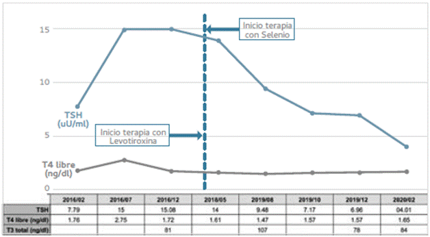 dar a conocer un caso de hipotiroidismo tratado exitosamente con selenio y levotiroxina, así como describir el papel del selenio en la enfermedad tiroidea.