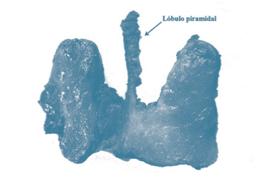 Figura 2: Glándula: tiroides Nota explicativa: la flecha ilustra el lóbulo piramidal.