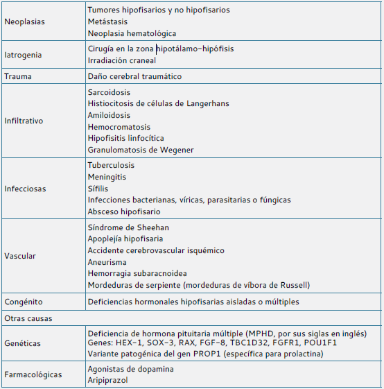 Tabla 1: Causas de deficiencia de PRL por hipopituitarismo