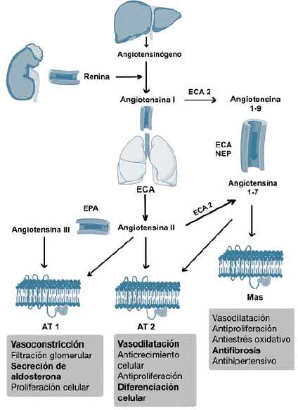 Para entender la entrada del SARS-CoV-2 en el organismo y correlacionarla con el desequilibrio fisiológico que provoca, se debe esclarecer el funcionamiento del sistema renina-angiotensina (SRA).