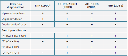 En la última década, el NIH hizo una reevaluación de los criterios diagnósticos publicados o existentes, sacando un nuevo consenso en el que se reconocieron los criterios de Rotterdam y como resultado se sugirió su utilización junto con la descripción detallada de la clasificación del fenotipo clínico del SOP (23) (tabla 1).