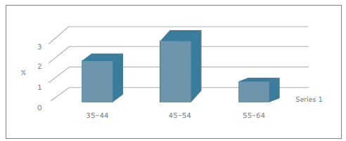 En las tabla 2 y figura 2 se contemplan las muertes divididas por segmentos de edad, siendo el de entre 45 y 55 años el más numeroso, con el 50 % de los casos.